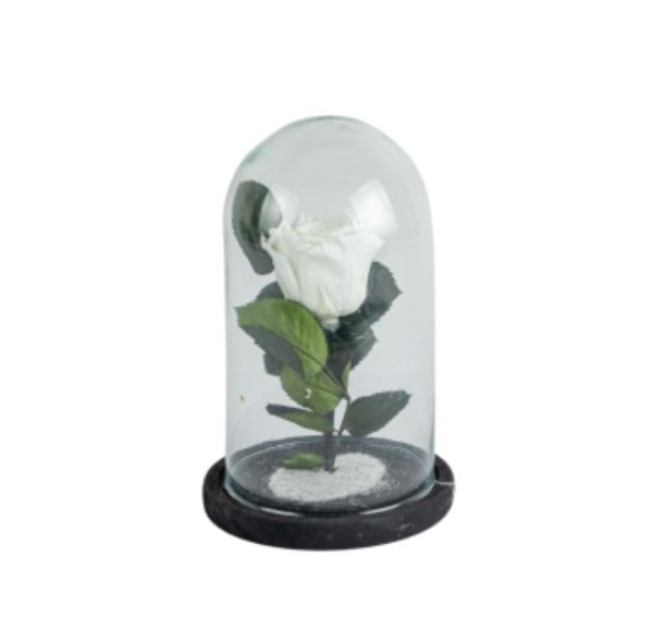 Παντοτινά Τριαντάφυλλα σε Γυάλινο Βάζο με Θερμό LED Φωτισμό 19x11cm -λευκό χρώμα